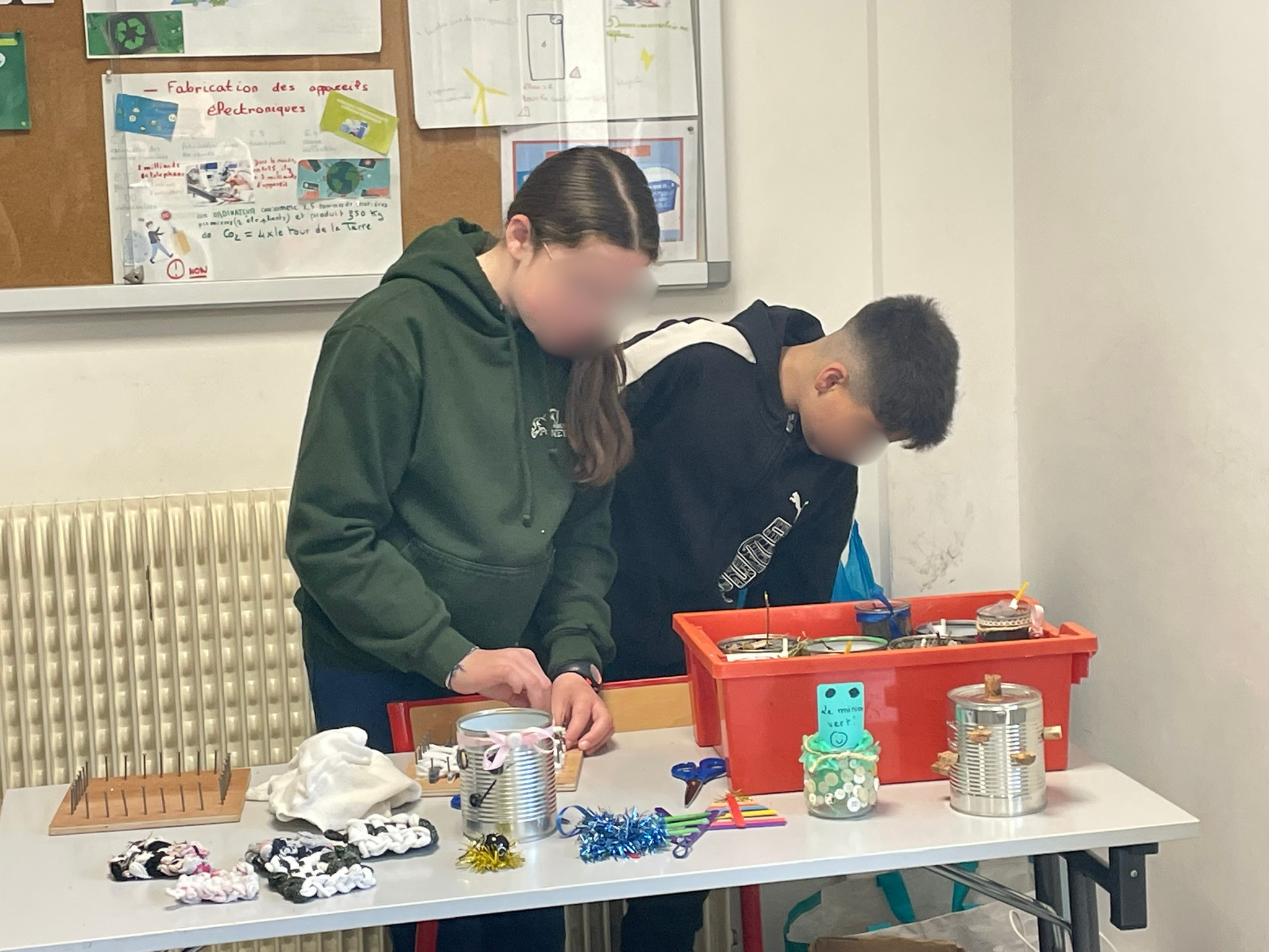 Les élèves de l'atelier éco collège et de CM en pleine création collective!
