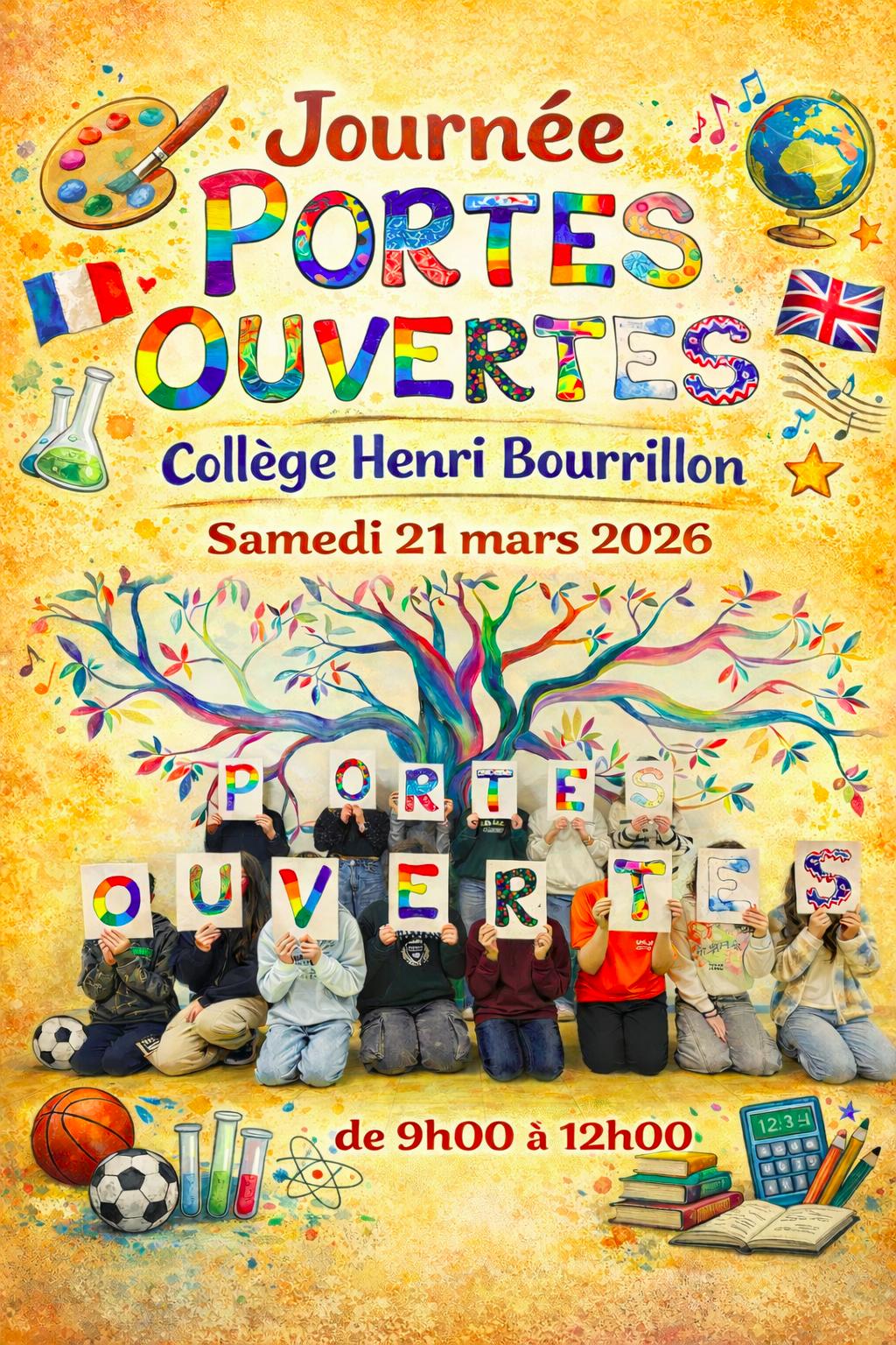 Venez découvrir notre collège à l'occasion de la Journée Portes Ouvertes : le samedi 21 mars de 9h à 12h...