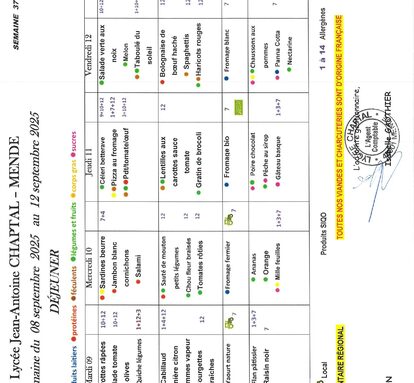 Menus de la semaine